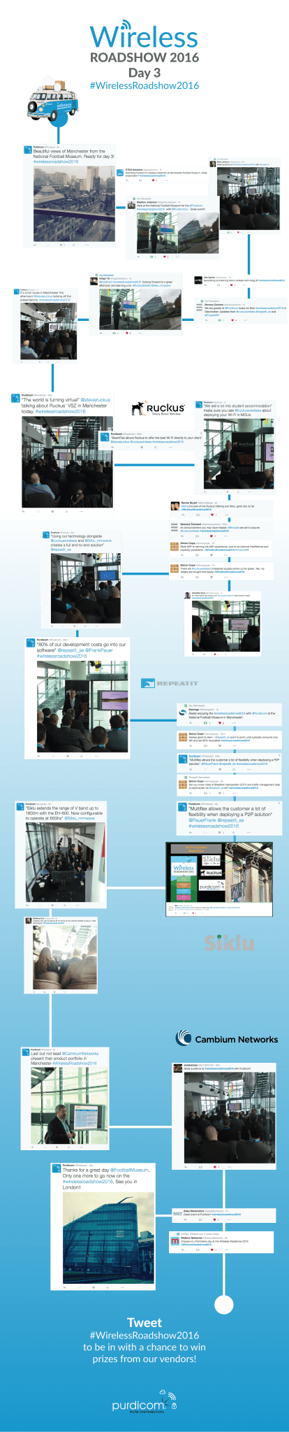 Tweet @Purdicom  with #WirelessRoadshow2016 to be in with a chance to win prizes from our Vendors, ranging from money off your next order to £100 M&S vouchers!
